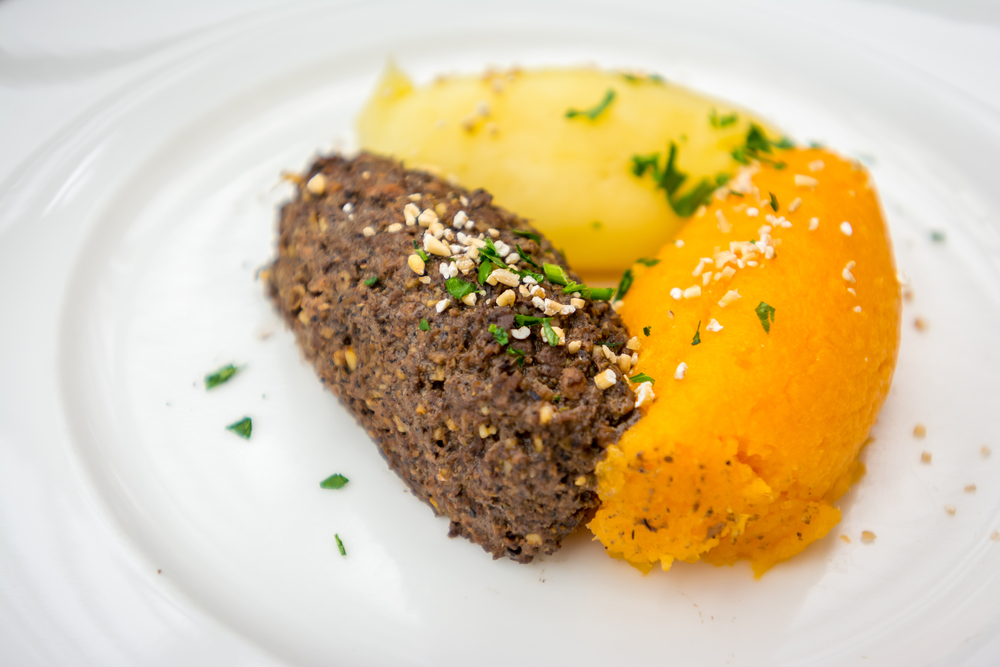 Don’t be put off by the description (or appearance) of haggis. It’s traditionally made from sheep’s stomach stuffed with oats and spices but it’s really tasty and a must-try. An alternative is vegetarian haggis. Haggis is usually served with neeps and tatties (mashed turnips and potatoes).