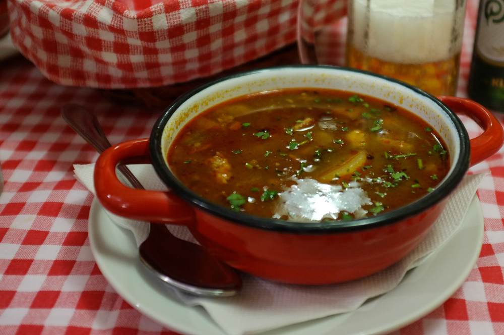 The Hungarians have been eating goulash for centuries. It’s usually a thick stew, or sometimes a soup, with meat and vegetables, seasoned with paprika. It’s best served in a bread bowl and with a beer.
